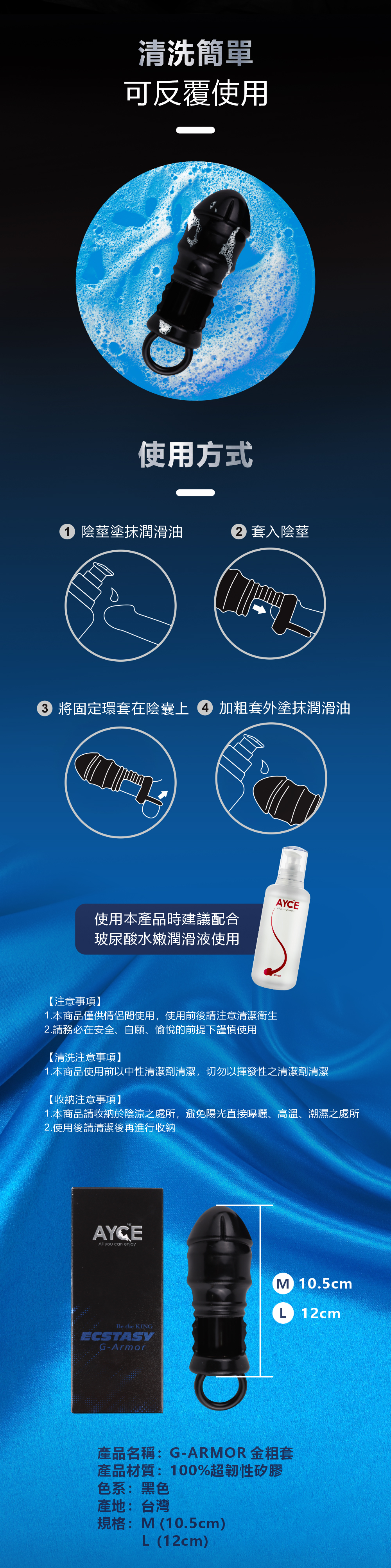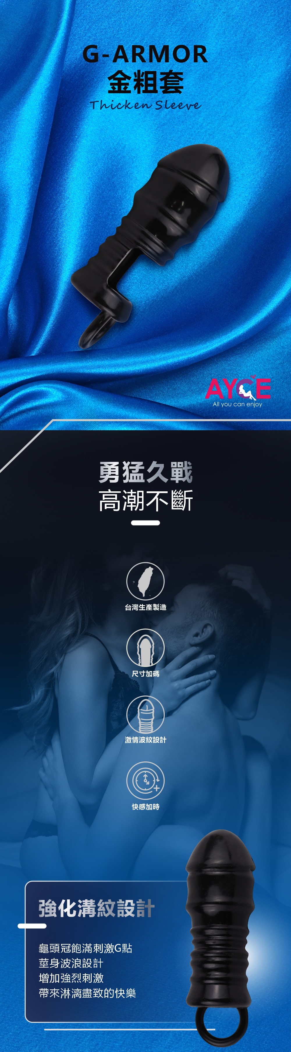 AYCE G-ARMOR 金粗套 台灣生產製造 尺寸加碼,激情波紋設計,快感加時 免入珠,免開刀