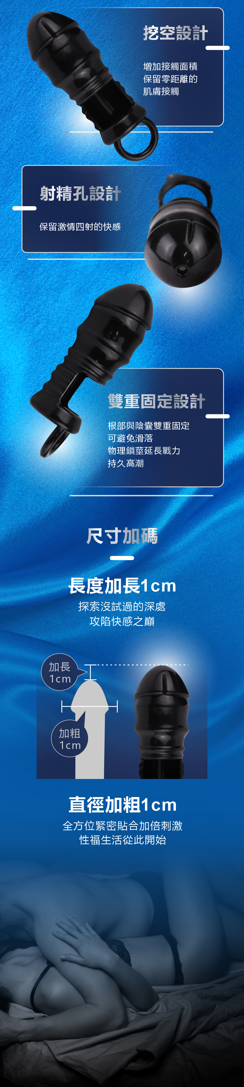 l 雙重固定設計:根部與陰囊雙重固定設計,物理鎖莖延長戰力。