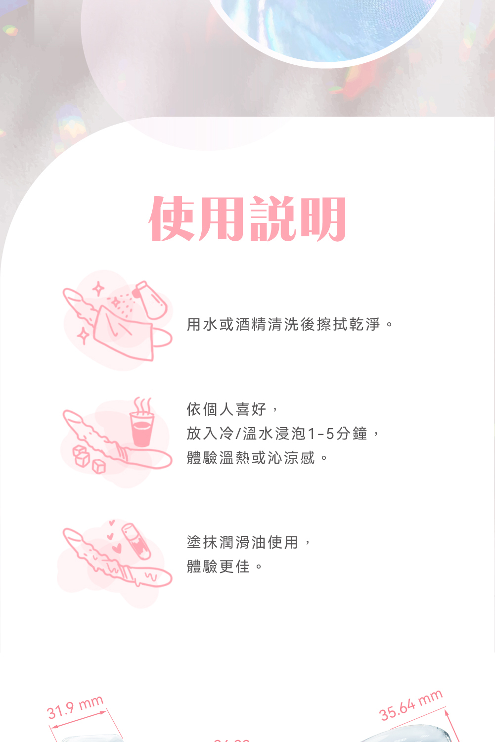 l 冰火二重天玩法:玻璃材質可快速導熱/保冷,冰鎮後帶來緊縮驚喜感,加熱後則如體溫般溫暖進入,打造冷熱交替刺激感,是探索身體反應的新玩法!